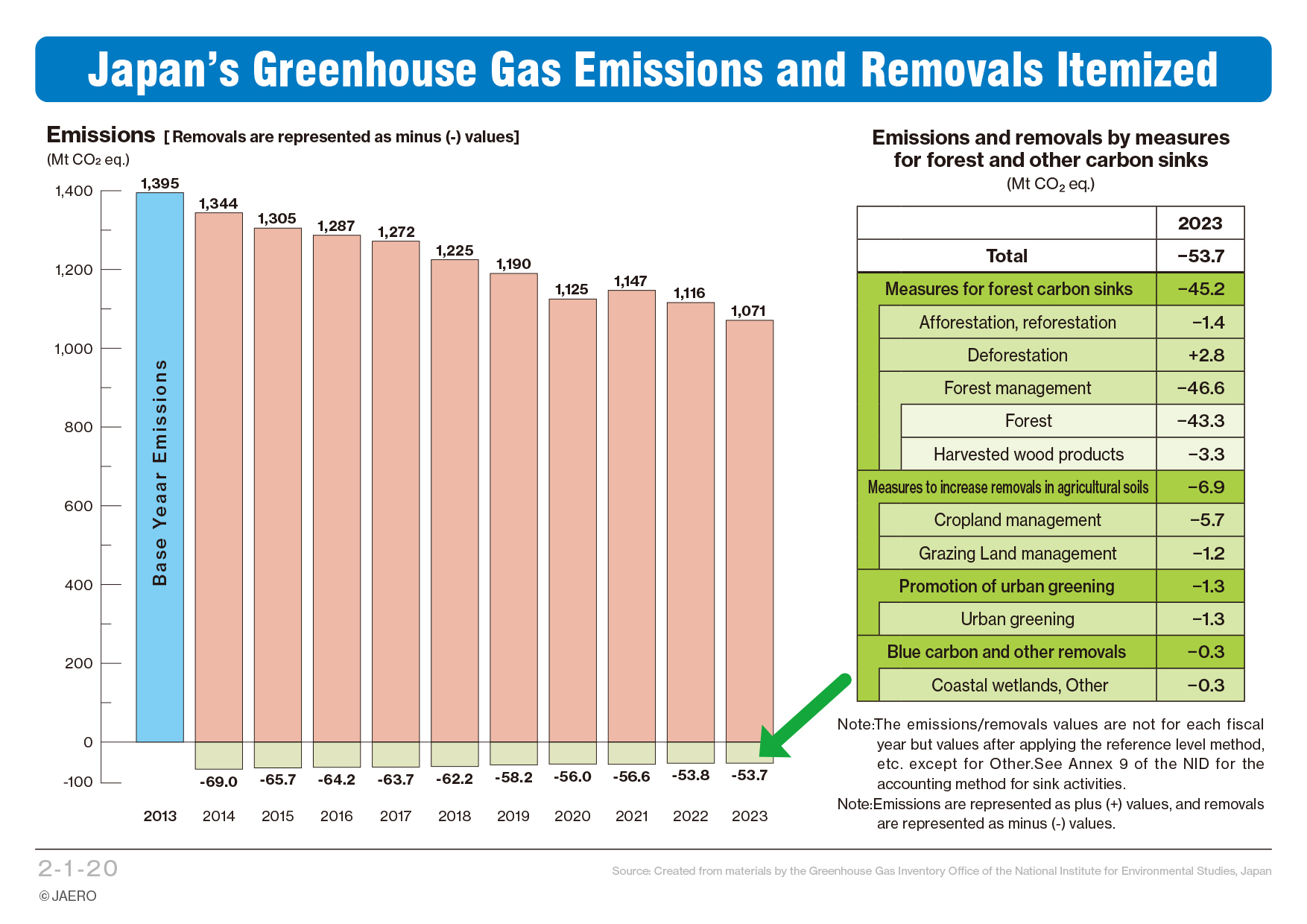 【2-1-20】Japan’s Greenhouse Gas Emissions and Removals Itemized
