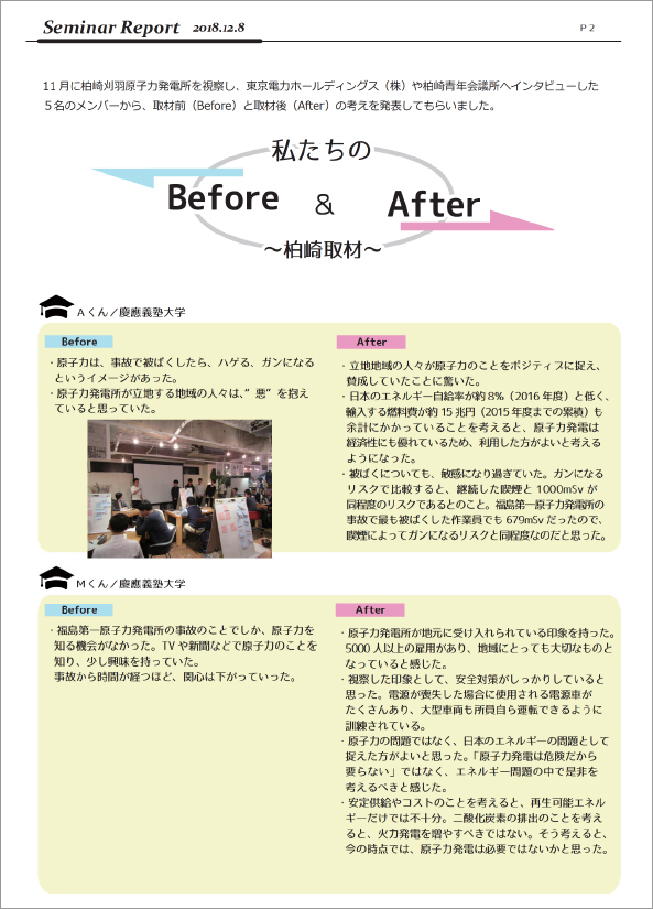 教材・セミナー ホーム > 教材・セミナー > セミナー > セミナーレポート「原子力発電ってなんだ?まずは、知らなかったを、知ろう」(東京都開催) セミナー セミナーレポート「原子力発電ってなんだ?まずは、知らなかったを、知ろう」(東京都開催) PDFはコチラ この記事に登録されたタグ エネルギーミックス日本のエネルギーセミナーレポート大学生向け このページをシェアする 関連記事 シンポジウム「将来のことを話し合おう 日本のエネルギー・原子力」(大阪開催)セミナーレポート「必ず誰かに話したくなる経済学」(松山市開催)セミナーレポート「女子が知りたい!暮らしの中の放射線について楽しく学ぶセミナー」(松山開催)セミナーレポート「就活に効く“知的女子力”アップセミナー 私たちの未来のくらしについて考えよう」(大阪開催) Copyright(C) Japan Atomic Energy Relations Organization All Rights Reserved.