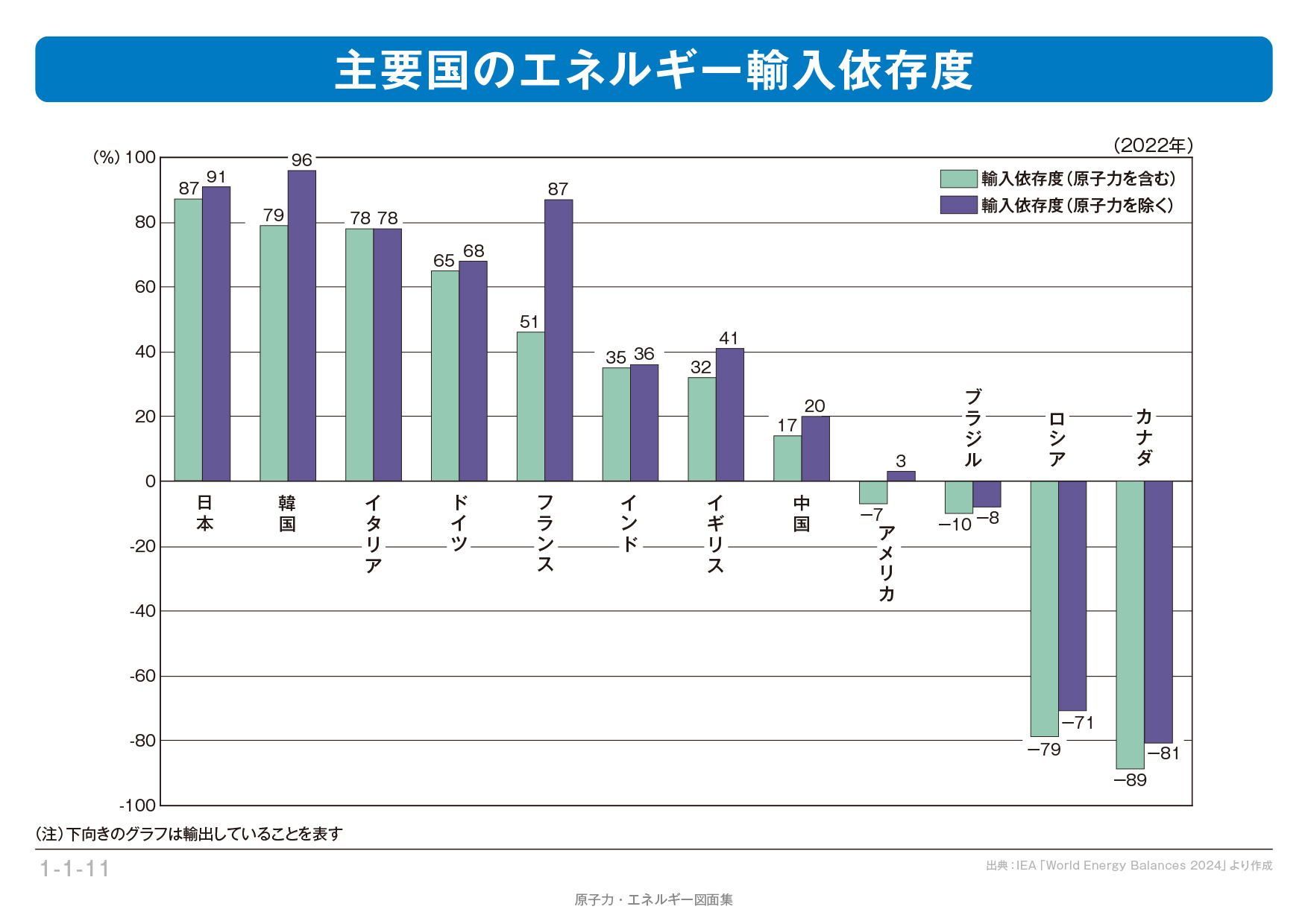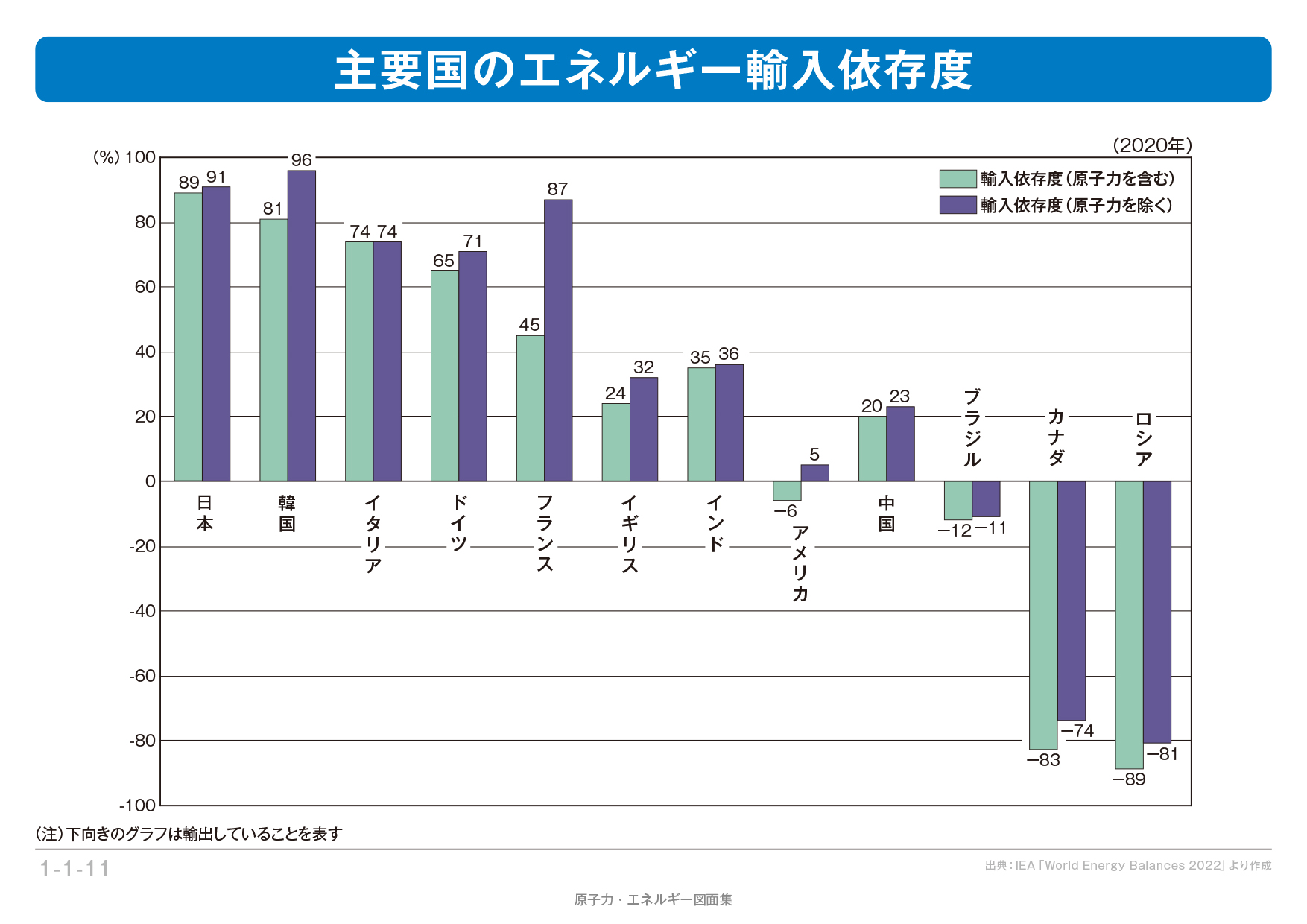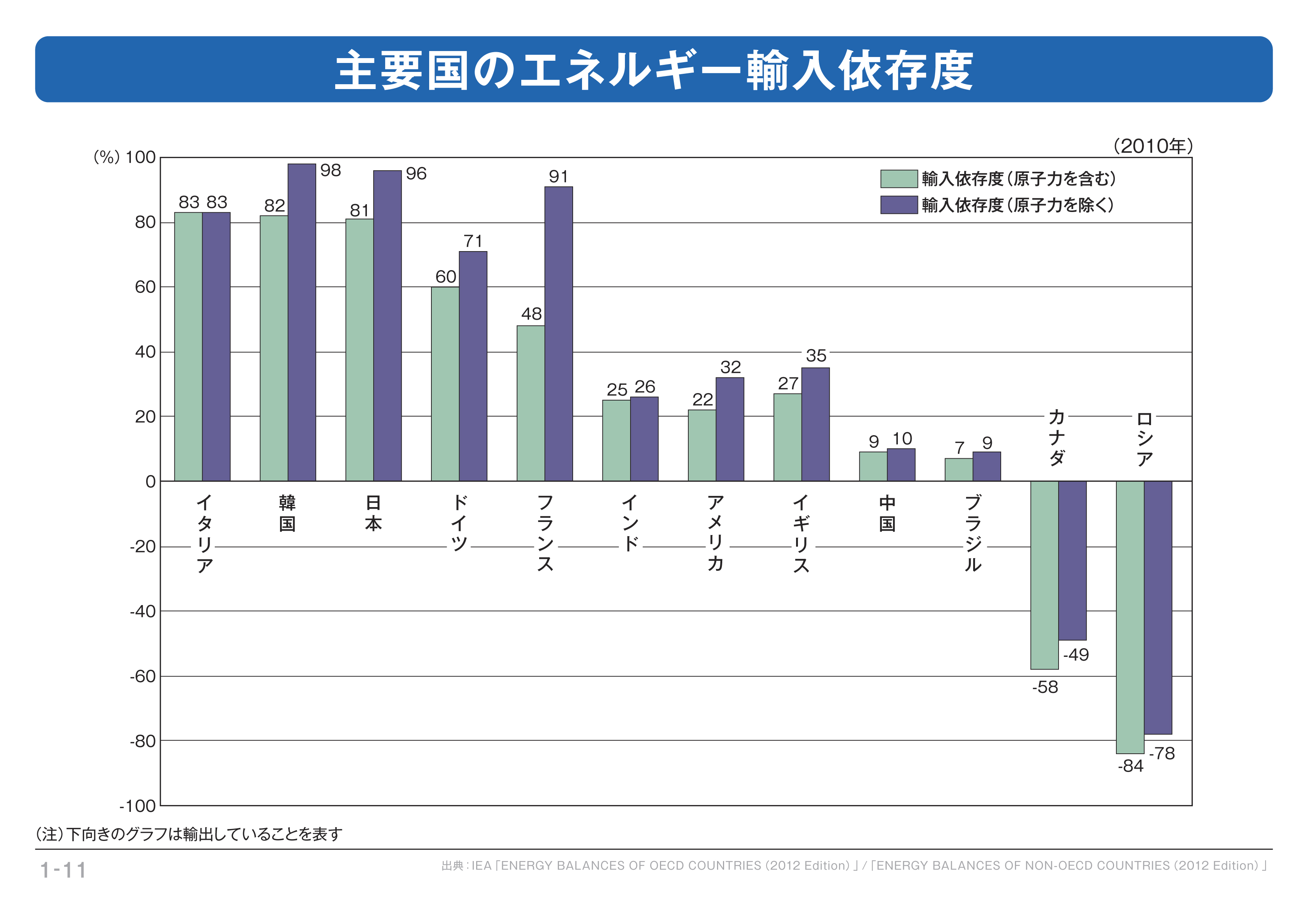 【1-1-11】 主要国のエネルギー輸入依存度