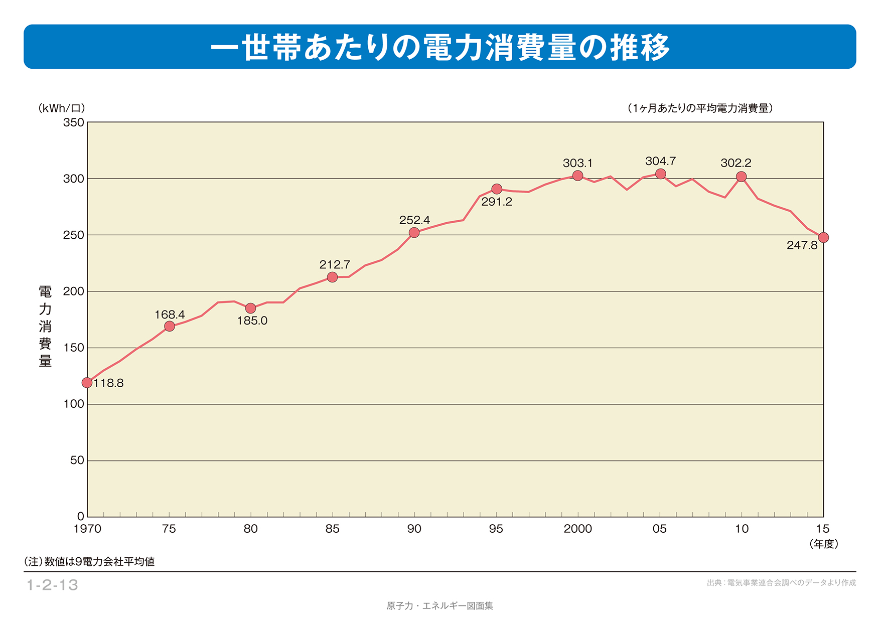 【1-2-13】 一世帯あたりの電力消費量の推移