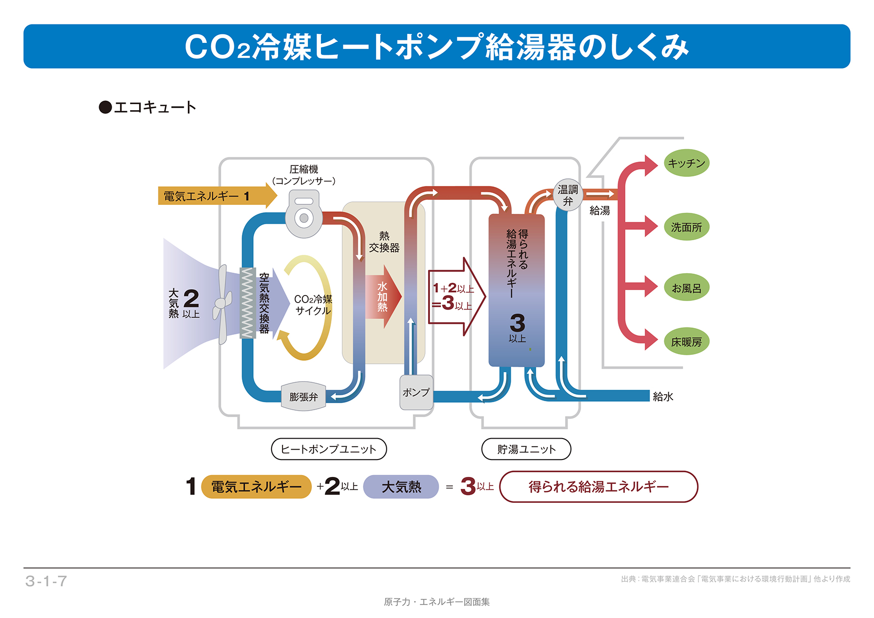 【3-1-07】CO₂冷媒ヒートポンプ給湯器のしくみ