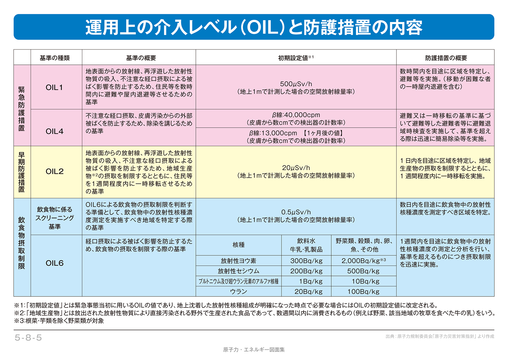 【5-8-05】運用上の介入レベル(OIL)と防護措置の内容