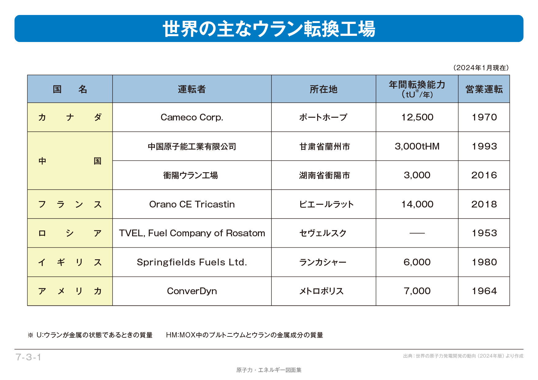 【7-3-01】世界の主なウラン転換工場