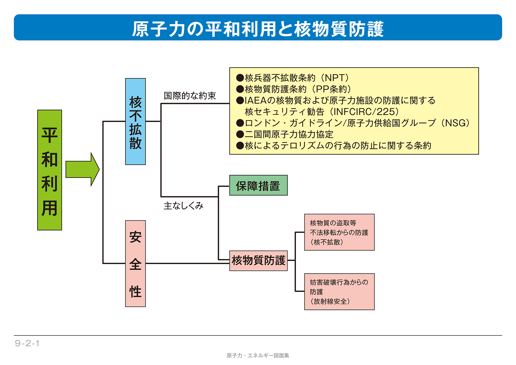 原子力の平和利用を進めていくためには、核不拡散、安全性、社会の受け入れ(社会的受容)が重要となる。各国が核軍縮に努力するとともに、核物質を平和目的のためだけに利用するよう、国際的な約束がなされている。その中で最も重要なものとして、保障措置と核物質防護がある。(2016年3月14日更新)